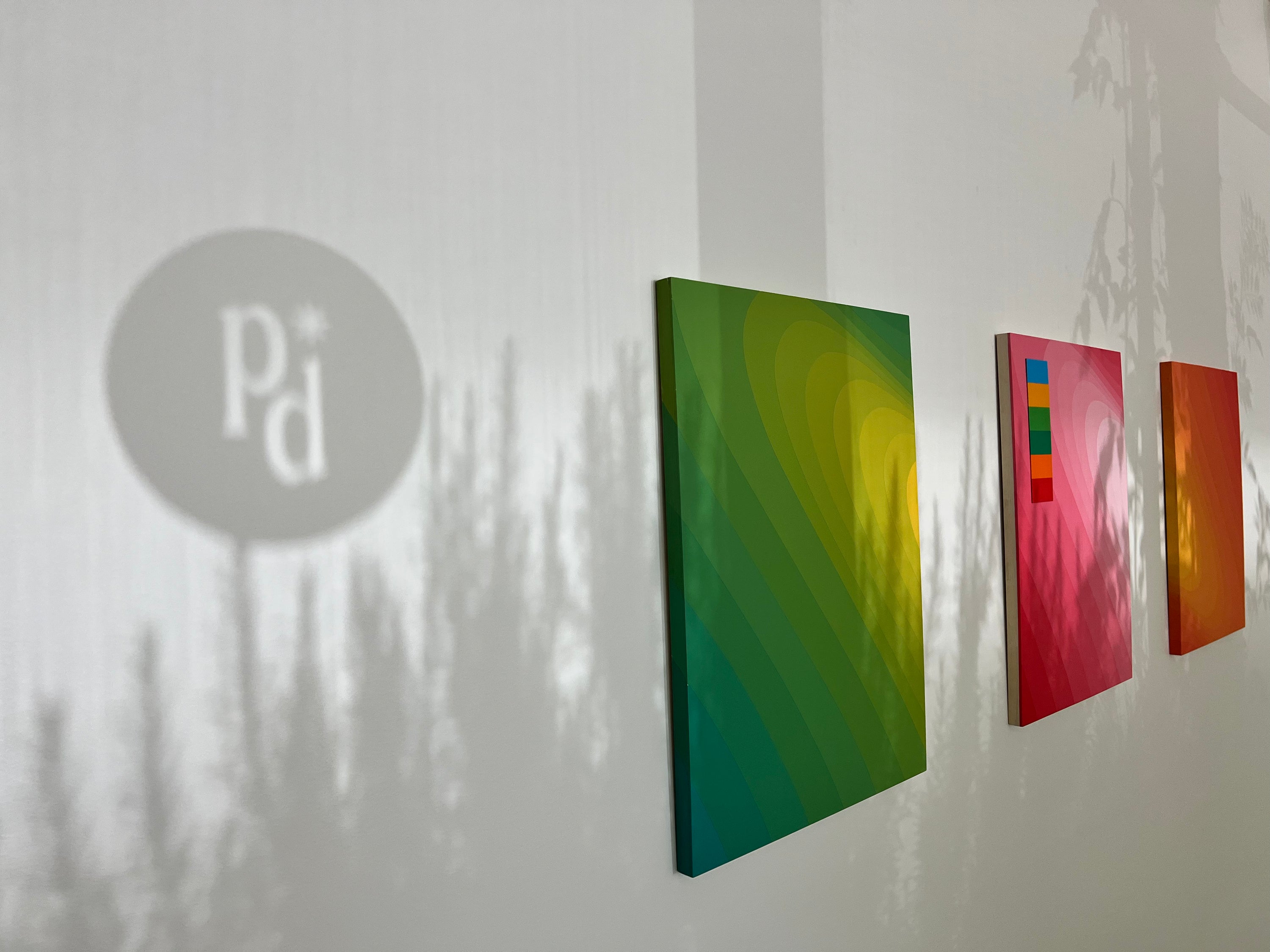 “As an artist in a technology-driven world I often have to remind myself that I am the one painting, I am human, and the pursuit of perfection can be futile. While some technology is crucial to my process, this series is a manifestation of my acceptance of my own approach; it is an exploration of color, light, movement, imperfection, and perfection.“